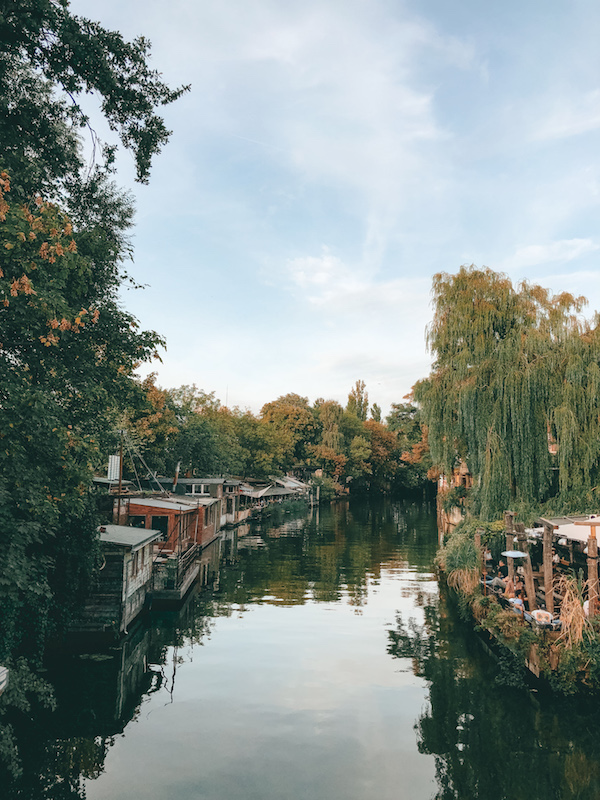 We walked along the beautiful canals and stopped in at Freischwimmer, a restaurant right along the forested waterway. We enjoyed the nature and ordered some drinks, flatbreads and roasted pork.