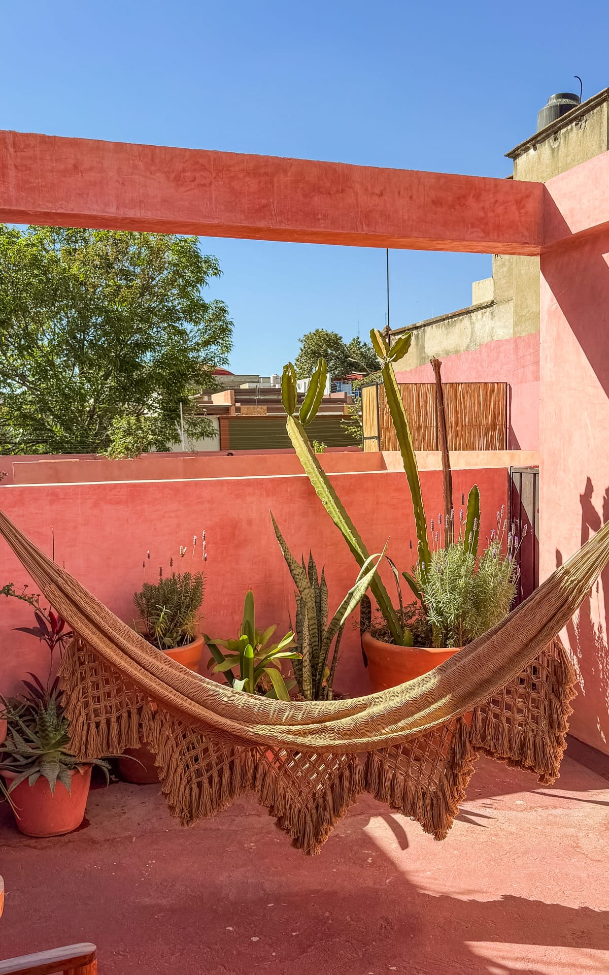 This charming boutique hotel, nestled in a terracotta pink building, offers a cozy retreat. Inspired by the ceremonial act of smoke, the thoughtful design elements add a unique touch to the ambience. We stayed in the Humo room, located up a small flight of stairs with its own private terrace.What to do in Oaxaca City