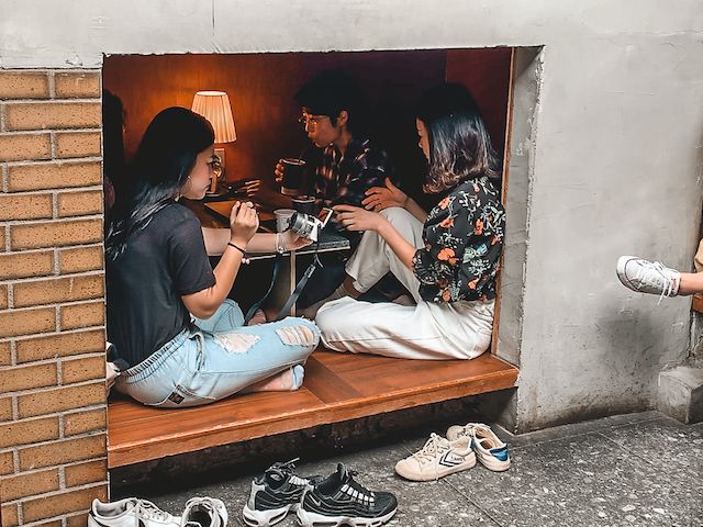 The Last Continent of Mu: located beside Anthracite, this cafe is brighter inside with its white concrete walls and plants. You will see lots of young people working on their laptops. There are lots of charging areas available, which is a bonus. You can transition into your evening by ordering some food and a draught beer.