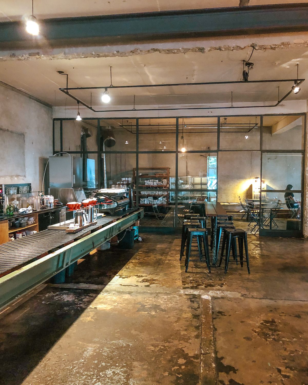 Anthracite Coffee Roasters: the shoe factory turned cafe has a dark industrial interior and a cool vibe. When it's nice out you can grab a seat in their large patio on the second floor.