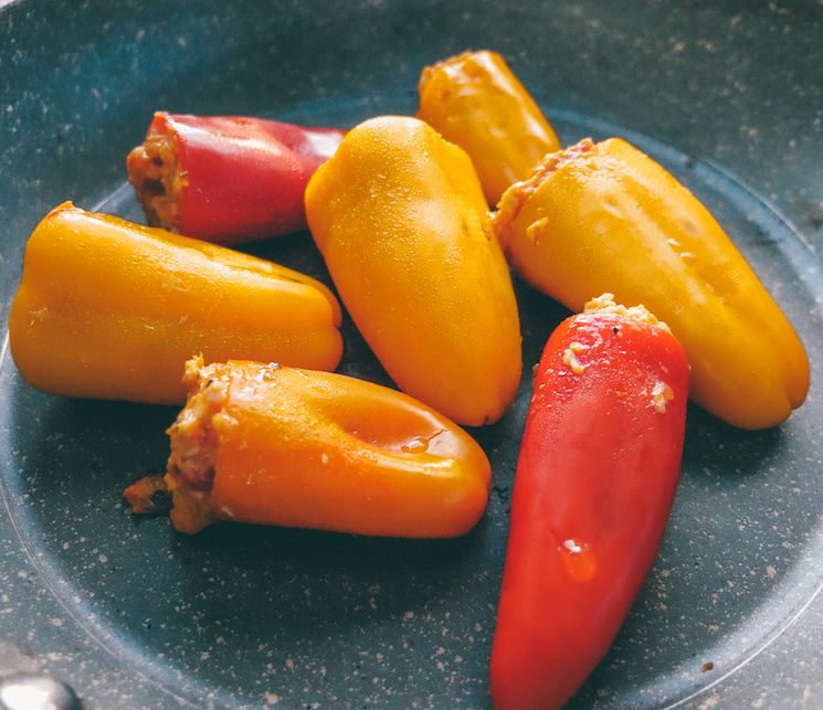 A great way to use your leftover chicken is to shred it, add cheese and hot sauce and stuff some fresh bell peppers. Cover your pan and grill em up!