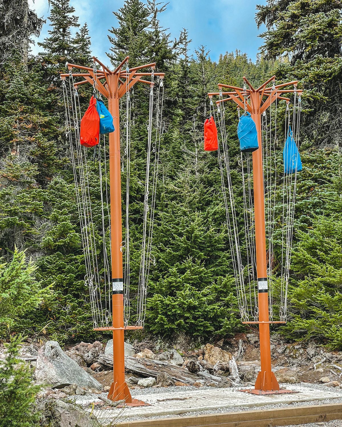 Don't be that camper who chases after their tent when the wind picks up. Garibaldi Lake Campground has wooden tent pads, so you will want ropes to help attach your tent to the pad. You can get custom lengths of rope at MEC. We got four 7 ft. long ropes with a 2 mm thickness.