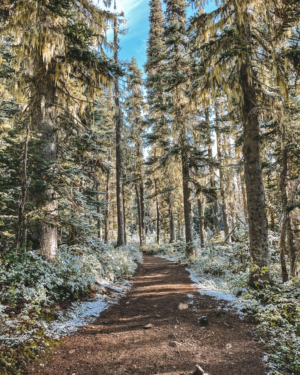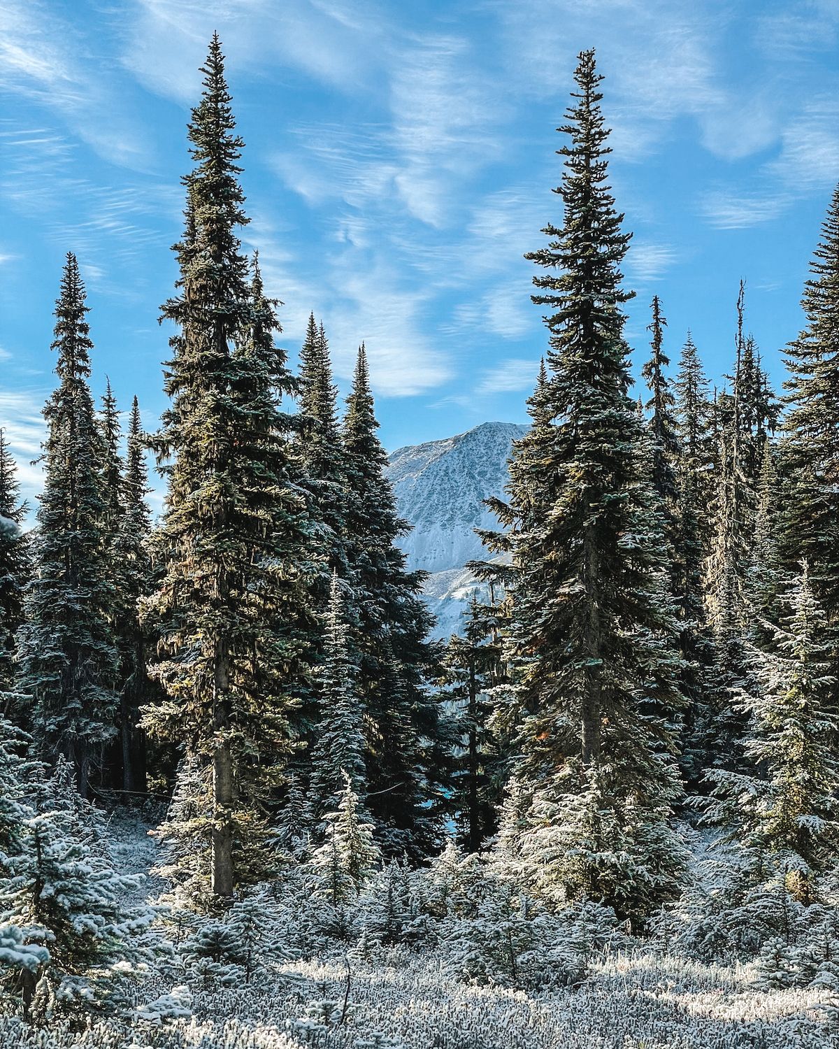 The hike gets absolutely beautiful from there in the alpine meadows. Since we woke up to some snow in the morning, the meadows and trees were beautifully covered in frost. We loved walking on the boardwalks through the open meadows. You will see wildflowers, rushing creeks and wildlife if you're lucky. We saw marmots, grouse and squirrels.
