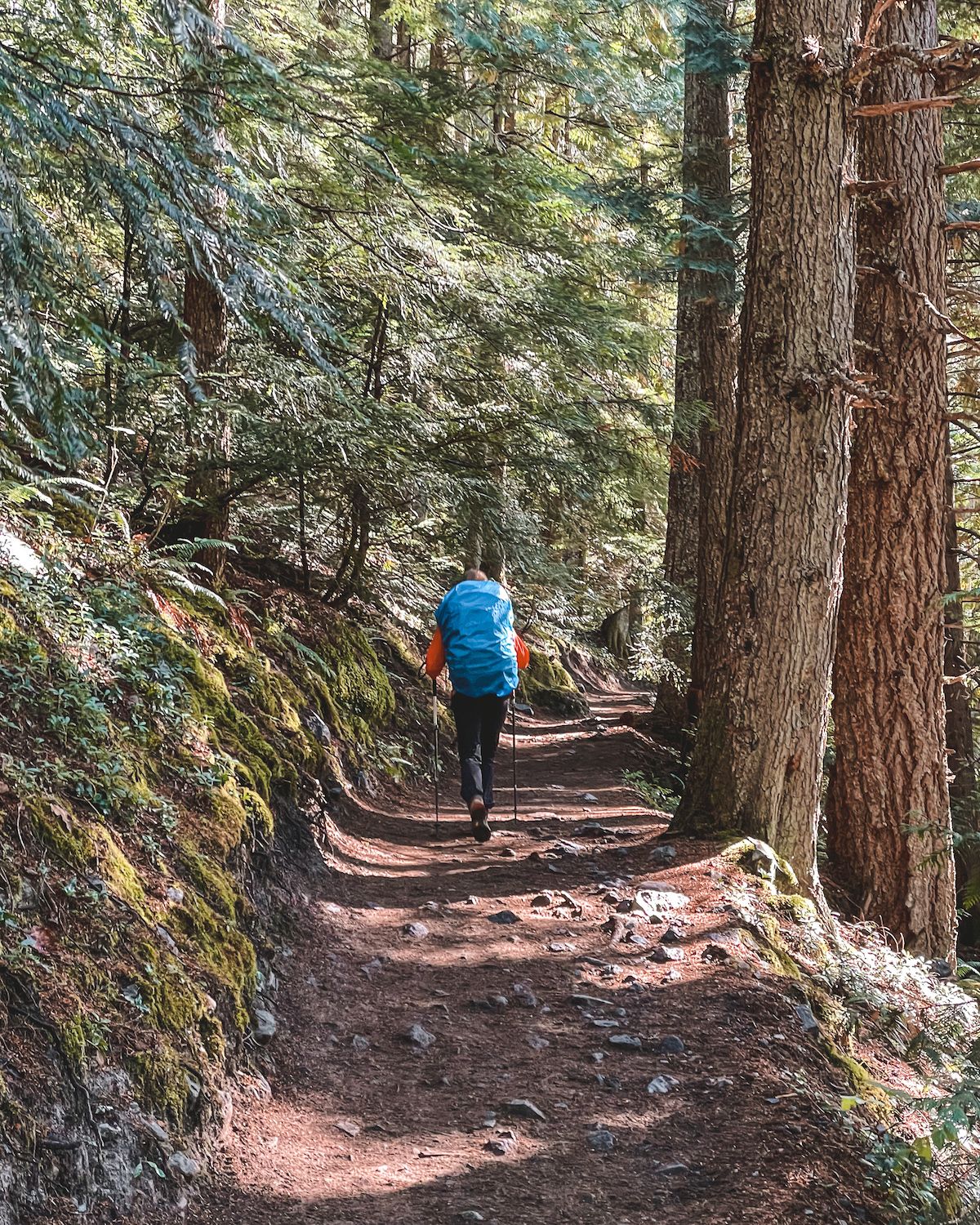 The first part of the hike from Rubble Creek trailhead to Garibaldi Lake may have an ascent of 850 m, but it's actually not too bad since the switchbacks are gradual. There are no stairs, yay! This makes it doable with a loaded pack.