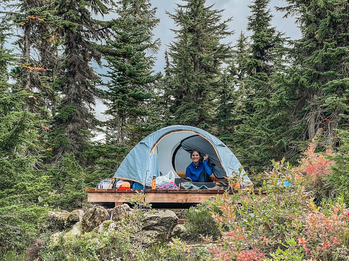 The best part about camping is that you can leave your tent and belongings back at the campground and hike the Panorama Ridge trail with just a small day pack. The hike to Panorama Ridge has some steep sections at the end with loose rock scree, so hiking poles are highly recommended.