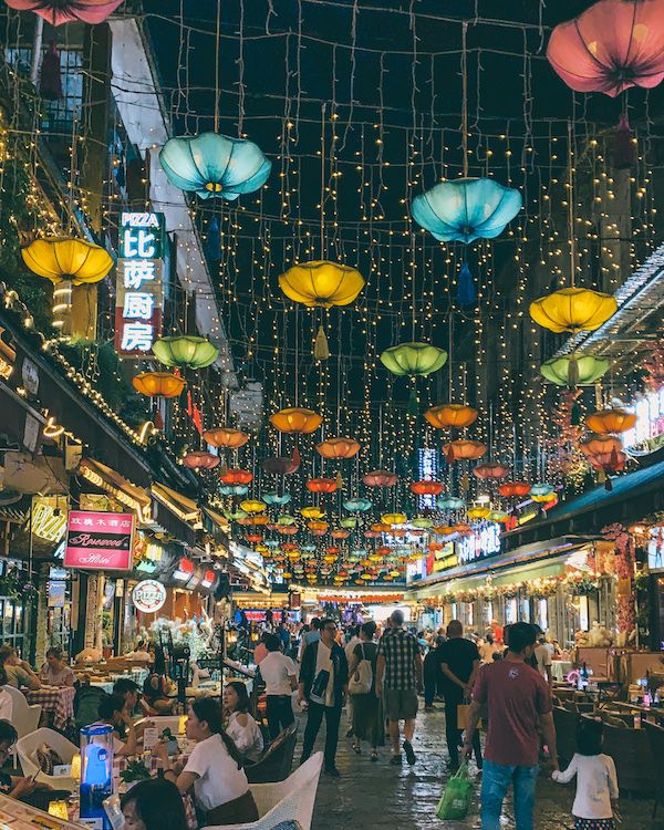 Once you're done dinner, make sure to keep walking through the small streets towards West Street to discover tons of market stalls and shops. At night time the streets light up with all of their hanging lights.