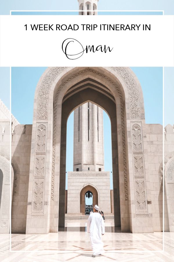 1 Week in OmanDay 1: Settle into the capital city of Muscat Day 2: Drive up the Hajar Mountain Range to Jebel Akhdar Day 3: Stay at a luxury camp in the sand dunes Day 4: Go wild camping in the dunes Day 5: Swim in a wadi and camp along the Arabian Sea Day 6: Take a refreshing dip in Bimma Sinkhole and shop at the Mutrah Souq in Muscat Day 7: Walk through the magnificent Sultan Qaboos Grand Mosque |