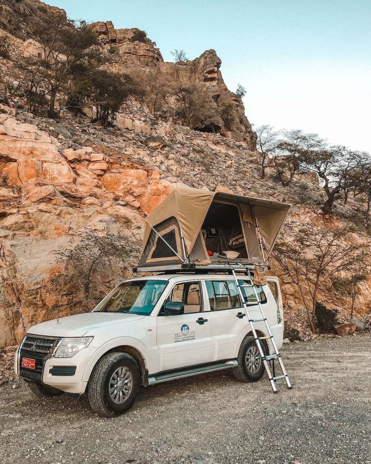 We chose iDrive 4x4 since we could hire a 4x4 and a rooftop tent with all camping supplies in one bundle. It worked out to about $150 USD per day for the car rental including insurance and all camping supplies like cooking utensils, stove, sleeping bags, mattresses, chairs, table etc. Gas was super cheap at about $0.46 USD per litre (this was in 2019).Oman Road Trip Route