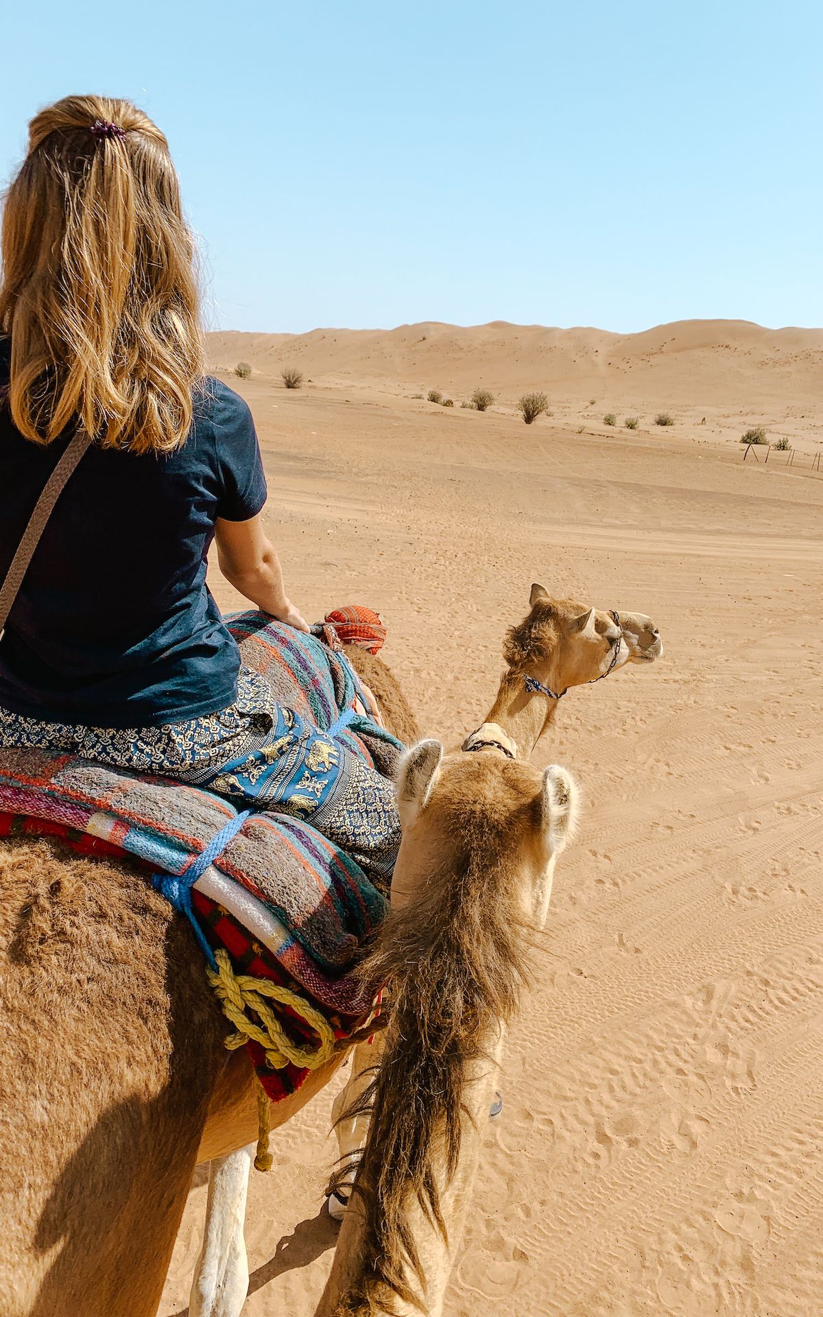 The camp felt like an oasis in the hot desert and our luxurious tent felt like a sanctuary. Our stay included a breakfast and dinner buffet, a 4x4 drive up the steep dunes to view the sunset and a 5-minute camel ride (which was kind of lame since it happens just near the camp). If you want to properly ride a camel, we recommend booking a private camel riding tour through the resort.