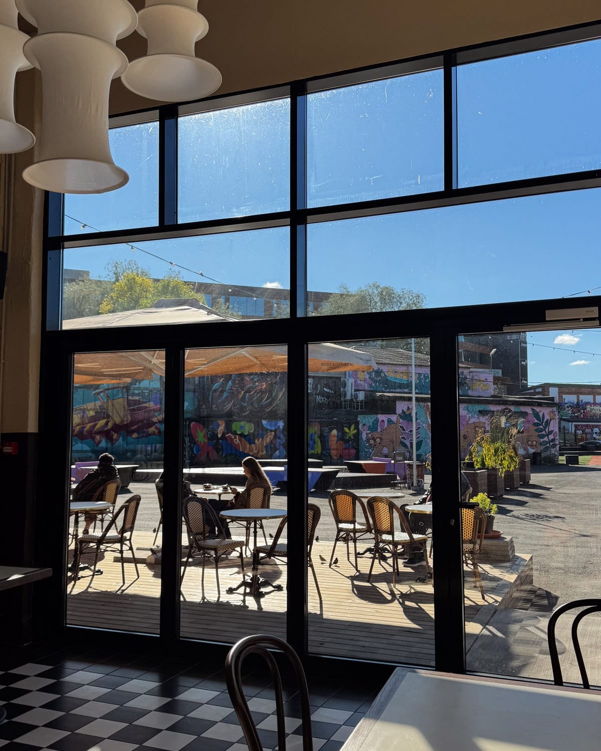 Brick warehouses are covered in murals, courtyards fill with people chatting over coffee, and the whole area feels relaxed and creative.