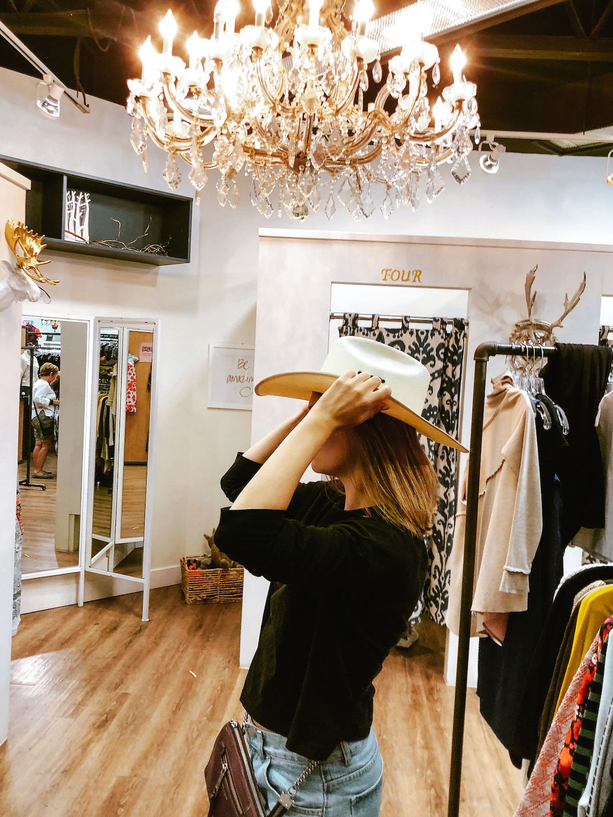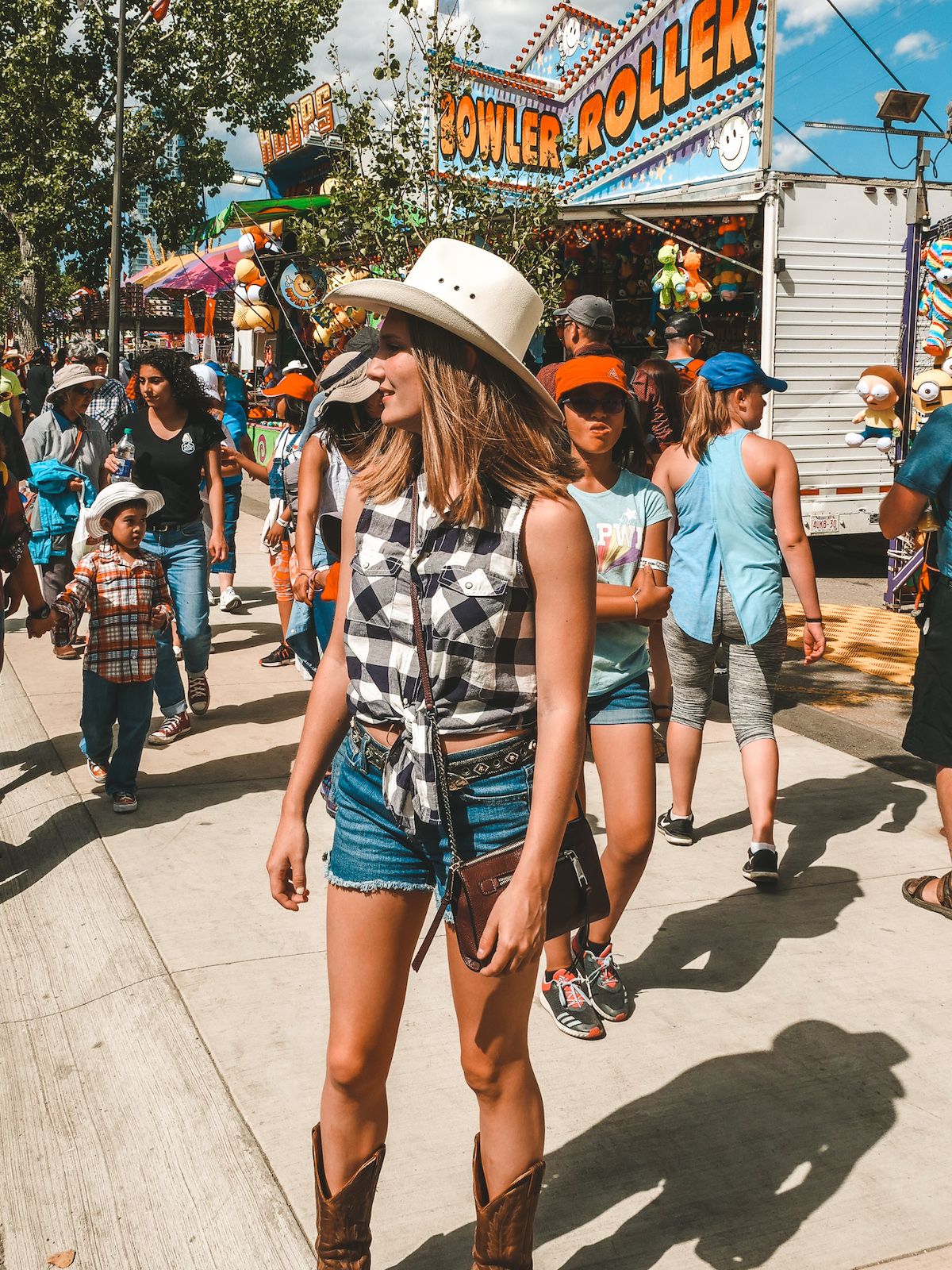 If you can't make it to a consignment store, there is a full selection of reasonably priced cowboy hats at the Calgary Stampede grounds. It’s important to get the right size, put it on and flick up the brim at the front. It's too big if it easily comes off your head. I paid $25 CAD for my hat.