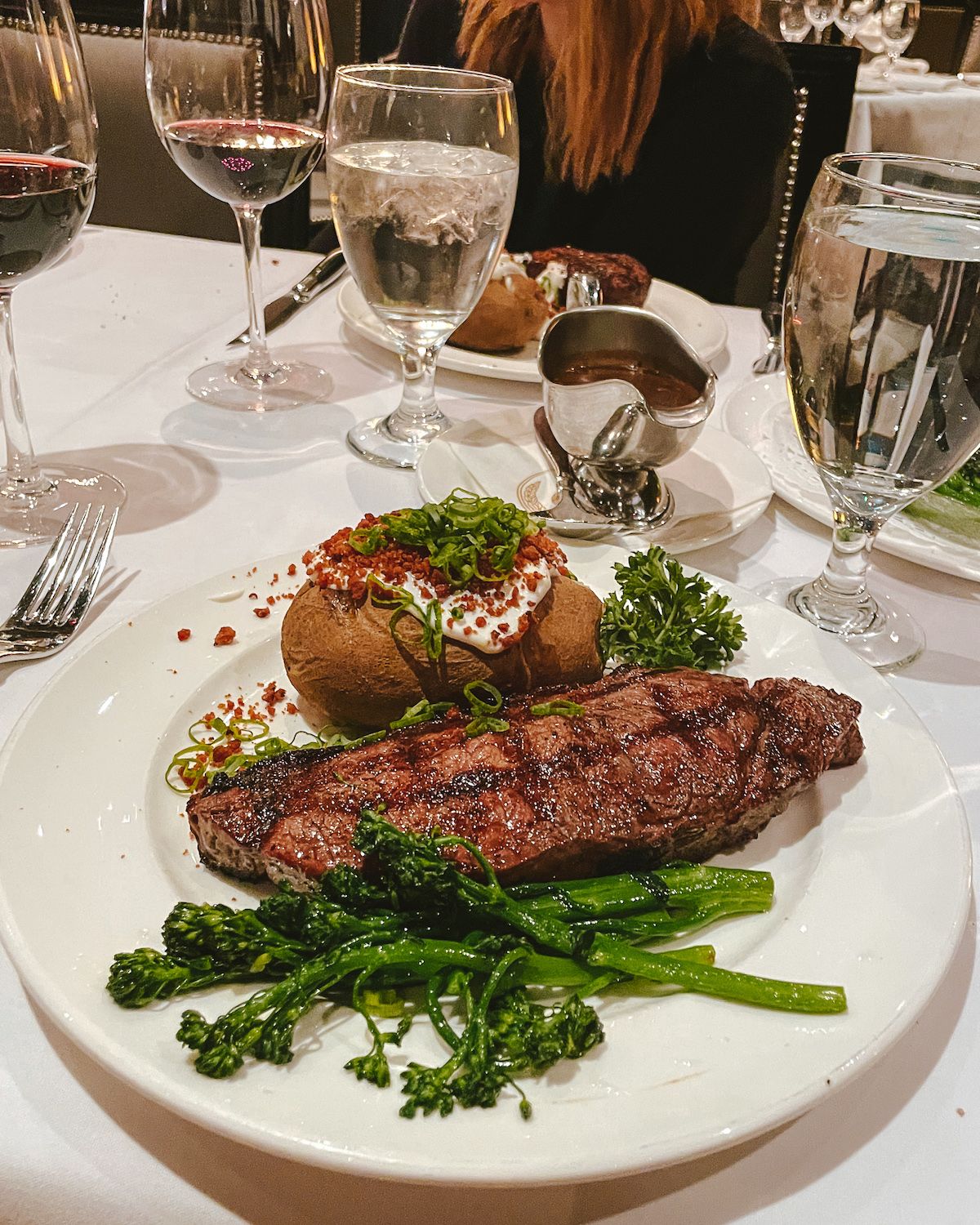 Start with a cocktail and some appies, like their caramelized French onion soup, escargots or shrimp cocktail, and complement your steak with a table-side made Caesar salad. It's fantastic! Make your reservation online in advance.