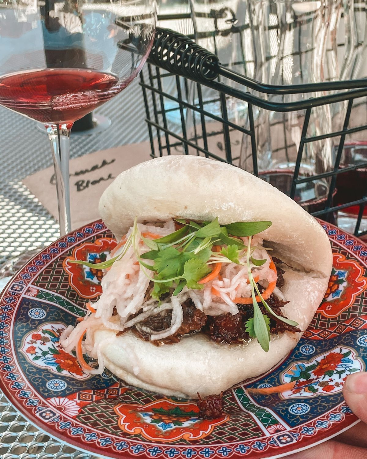 In addition to wine tastings, they serve delicious dim sum bites like pork buns and shrimp dumplings. It's a nice change from the typical charcuterie bites you see at other wine tasting rooms.