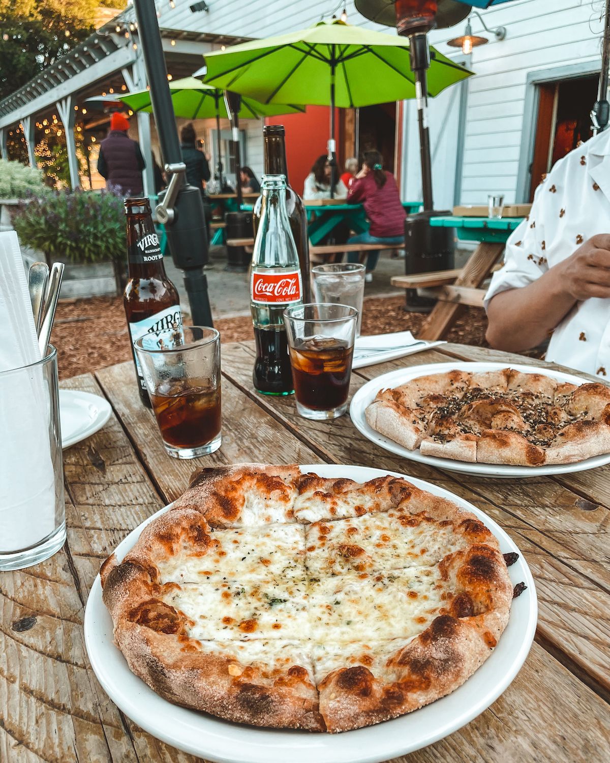 The pizzas at Full of Life Flatbread are handmade with locally sourced ingredients and are cooked in a 20-ton stone oven. They don't take reservations so you will most likely have to put your name on a waiting list, but they will text you when your table is ready. The delicious bubbling pies are worth the wait. They also have good vegan options.