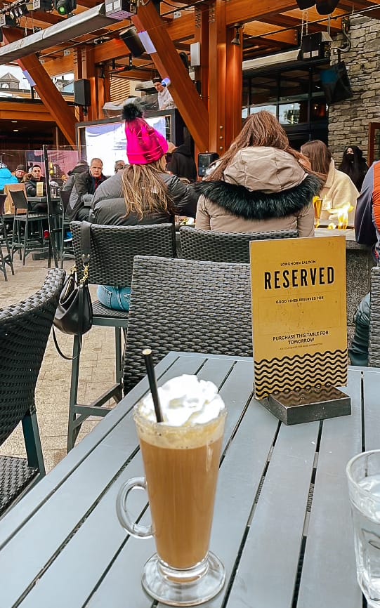 Longhorn Saloon is the most happening place to be for après-ski. It draws in a lively crowd of skiers and snowboarders in colourful and sometimes wacky ski attire looking to party after the slopes. It has somewhat of a Vegas feel to it with champagne bottles popping with sparklers and a DJ spinning energetic beats. The outdoor scene is illuminated by heat lamps and fire tables, offering the perfect vantage point to watch skiers wrap up their runs. It's a celebration in full swing.