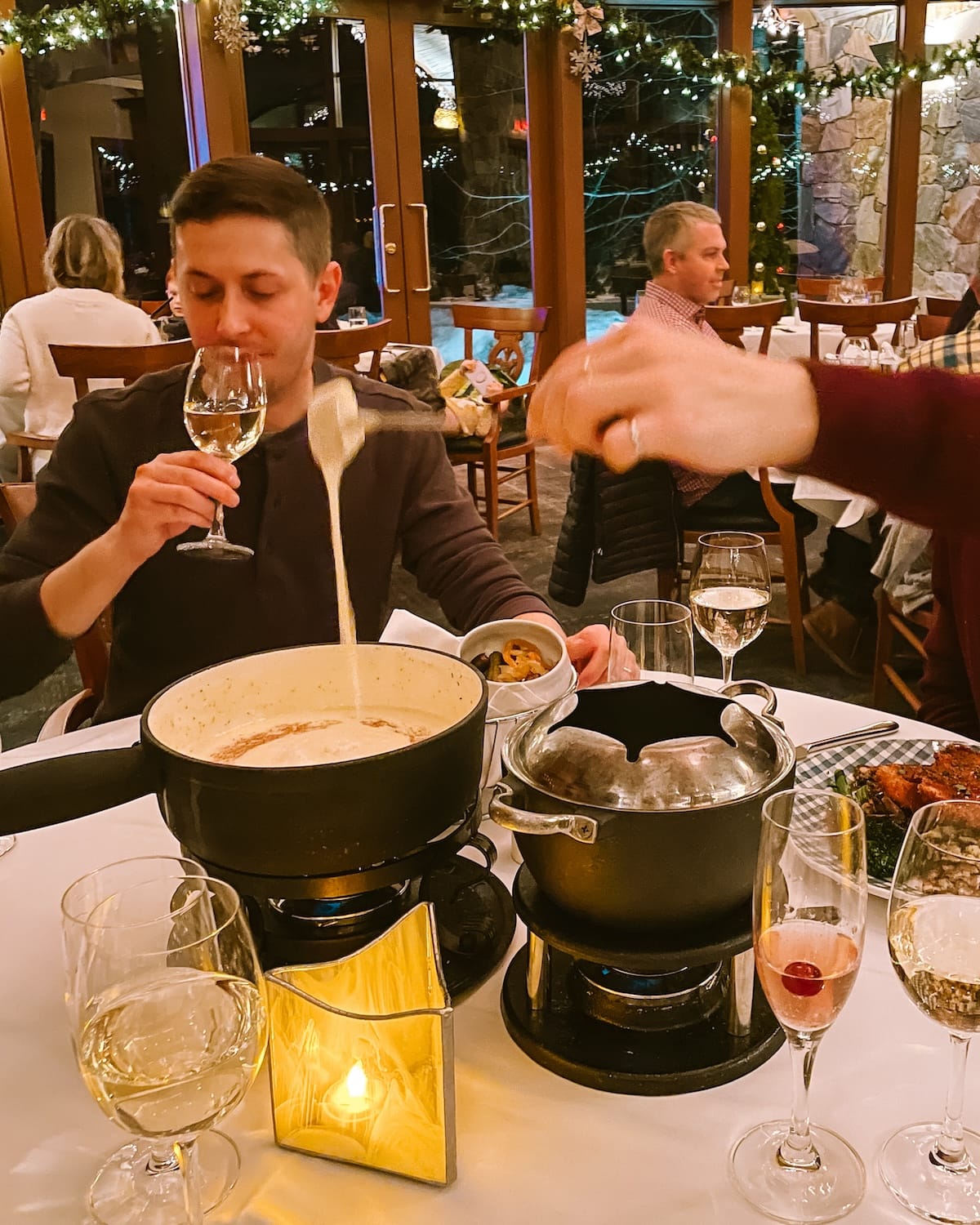The Chalet at The Fairmont Chateau opens during winter season. For $85 per person you get the full fondue experience with cheese fondue, meat fondue and chocolate fondue (min 2 people). It also comes with your choice of French onion soup or a salad. You can also order each fondue separately if you don't want all three.